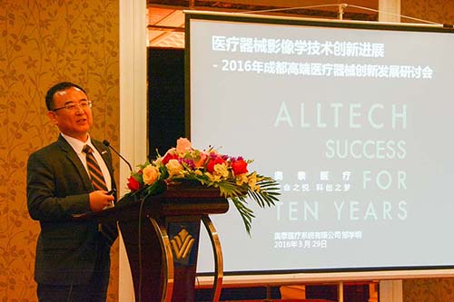会上,四川省医学会副会长、成都人才发展促进会会长,同时也是奥泰医疗的创始人、董事长邹学明博士表示,随着国家对民族医疗品牌的重视和扶持力度不断加大,高科技医疗创新企业迎来了更好的发展环境和平台。受益于国家和地方政府在人才引进、税收、融资等方面的大力支持,奥泰医疗自2005年成立以来,先后引进多名海内外高端人才。并多次承担国家科技部、国家发改委、四川省科技厅、四川省卫计委等科研项目20余项,积极促进科研成果产业化,为中国医用超导磁共振高端医学影像设备产业发展做出了积极贡献。