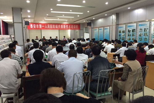 由泰安市第一人民医院主办的《“磁共振新技术讲座”暨奥泰EchoStar 1.5T MRI开机仪式》,5月19日上午在泰安市第一人民医院举行。泰安市第一人民医院王润东院长、千佛山医院影像科主任史浩教授、奥泰医疗系统有限责任公司市场部总监孙少杰博士出席本次会议并讲话。