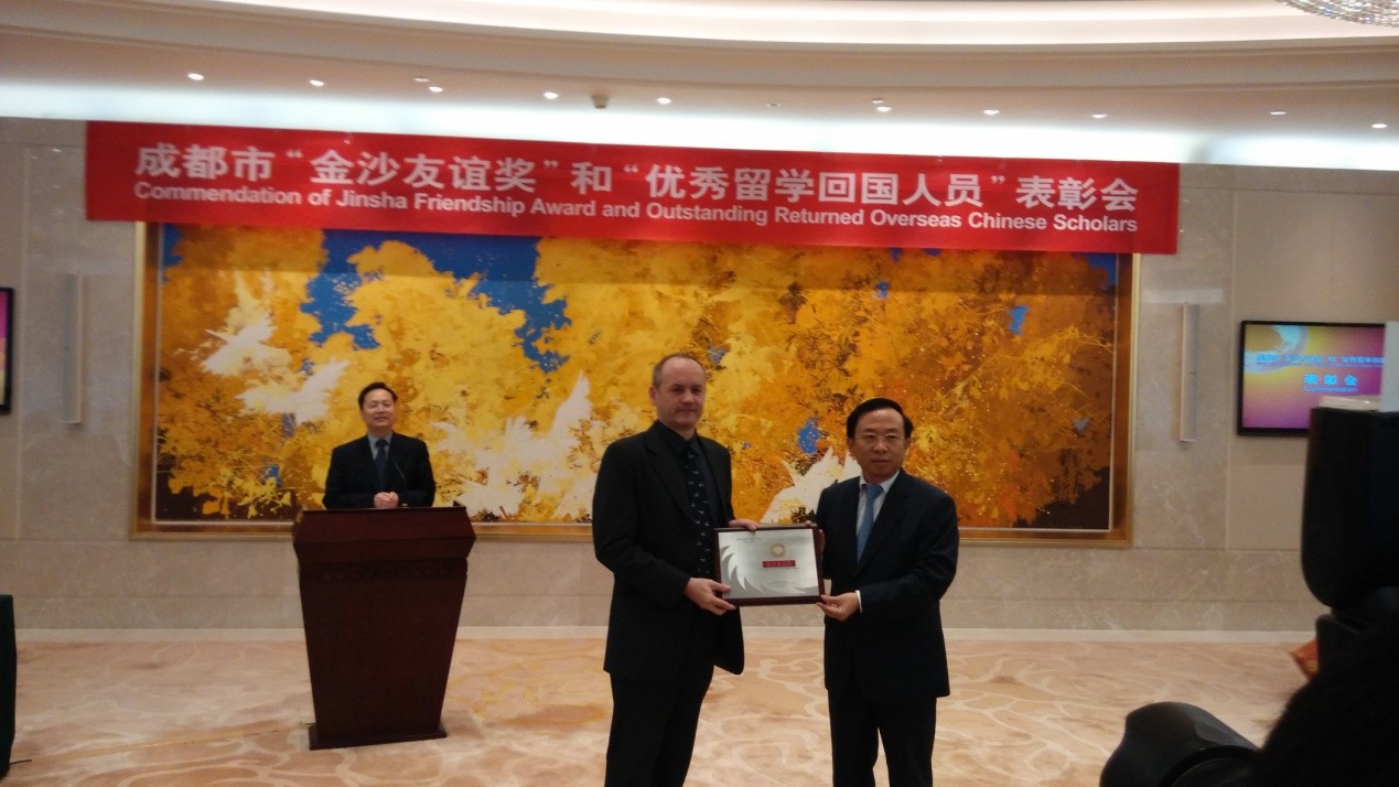 图片:成都市政府副市长谢瑞武为我公司CTO汉斯博士颁奖